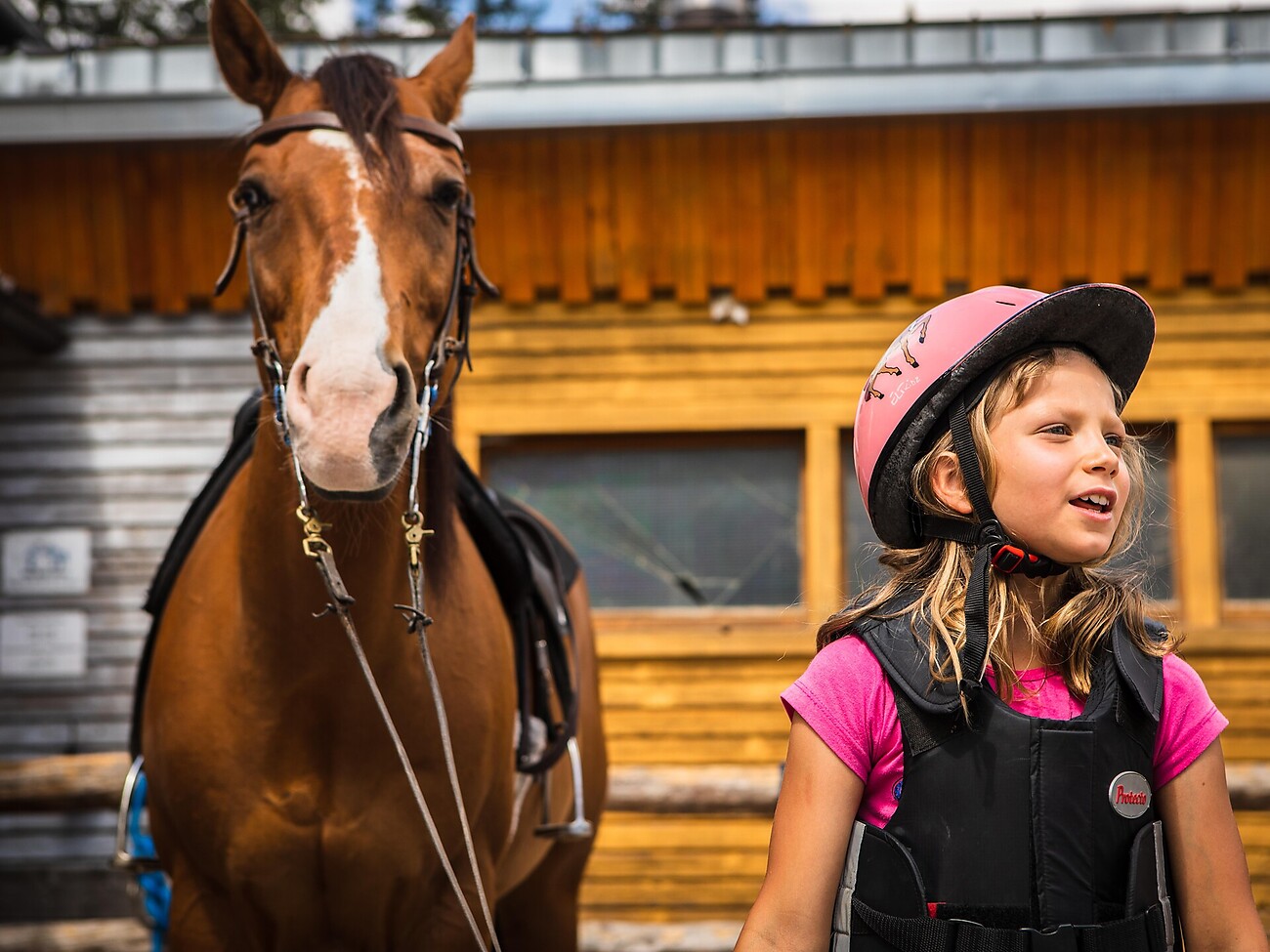 Orario: ore 16:00-18:00 | Punto d’incontro: Maneggio Angerle Alm | Prezzo: Euro 20,00/bambino (6-13 anni) | Numero di partecipanti: min. 4 bambini, max. 15 bambini | Iscrizione: entro le ore 10:00 dello stesso giorno | visita bilingue (DE & IT)