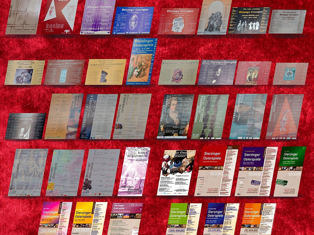 La mostra di quest’anno nel Teatro comunale offre uno sguardo sullo sviluppo e la variegata programmazione del festival negli ultimi 40 anni, con numerose foto in grande formato, brevi scene video, oltre a costumi e oggetti di scena in mostra.