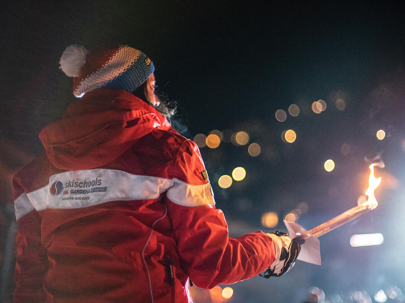 Ski Show della Scuola di sci e snowboard di Ortisei sulla pista Palmer.