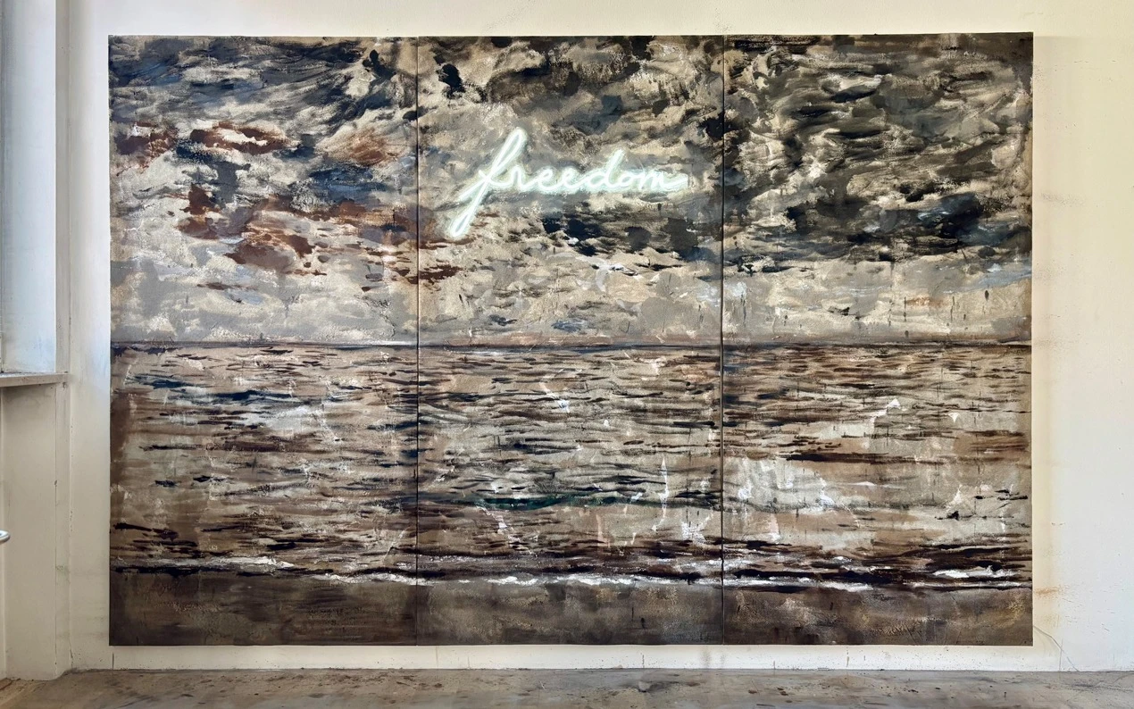 Foto: freedom di Nazario Zambaldi – cm 200x100x3, tecniche miste su tela, 2026
