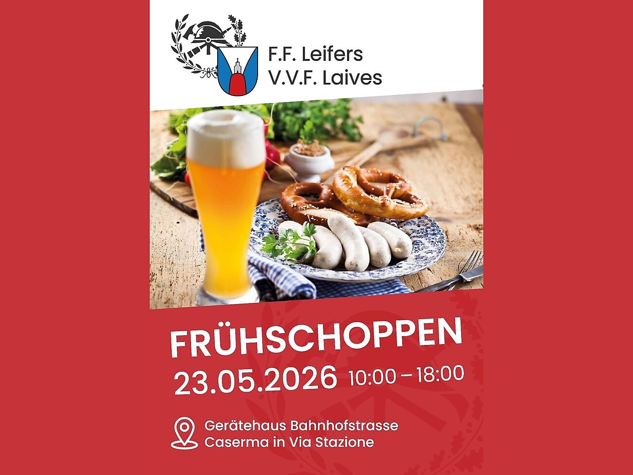 Una giornata in buona compagnia al Früschoppen traditionale dei V.V.F. di Laives sabato 23.05.2026 dalle ore 10 presso la caserma in via Stazione.