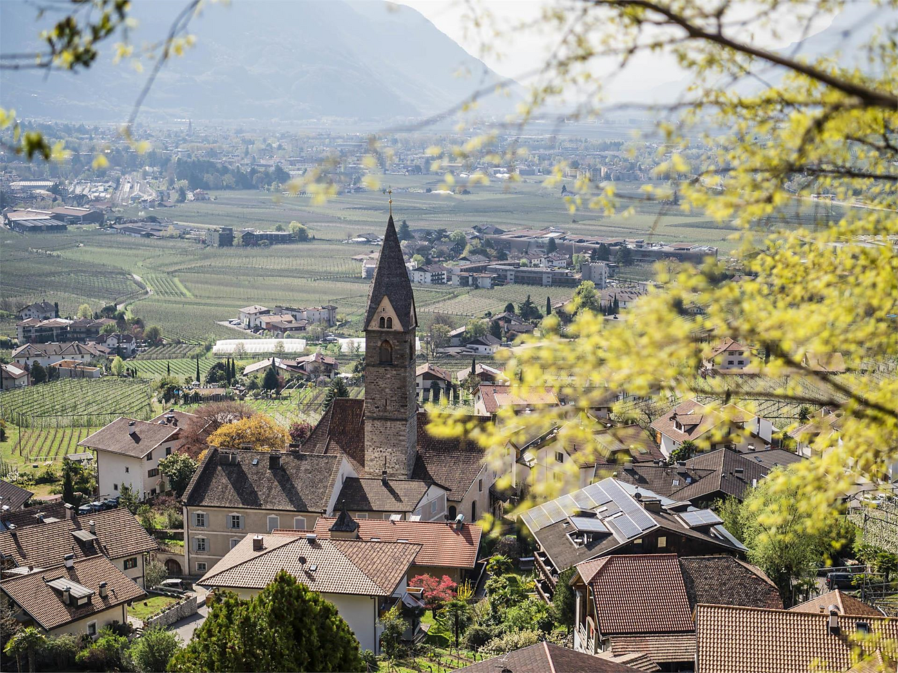 Während unserer anschließenden Dorfführung erfahrt ihr Spannendes über das geschichtsträchtige Algund mit seiner beeindruckenden Architektur, darunter die Pfarrkirche St. Josef und das Dominikanerkloster Maria Steinach. Ihr lernt Algund kennen und genießt die Natur.