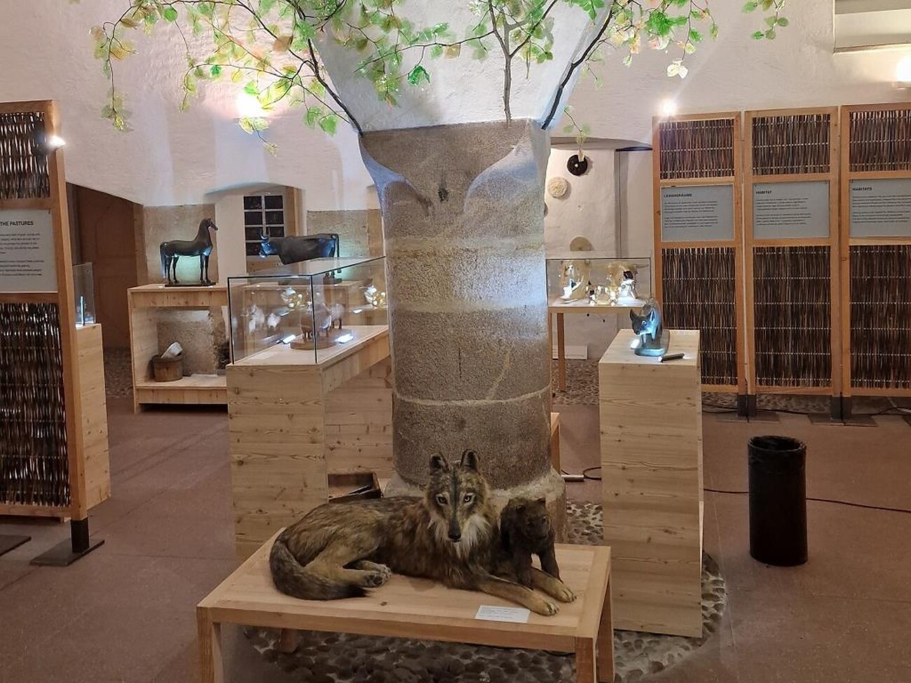 Scene di vita pacifica di pastori e animali al pascolo, di duro lavoro con tempo avverso e in aree per lo più disagevoli: tra questi due poli si muove la storia culturale della pastorizia. Quando gli uomini iniziarono a stabilirsi sulle Alpi portando con sé gli animali domestici, il paesaggio post-glaciale cominciò a cambiare. La mostra illustra i passaggi di questo sviluppo fino al dibattito odierno sugli animali da pascolo e sui loro predatori.