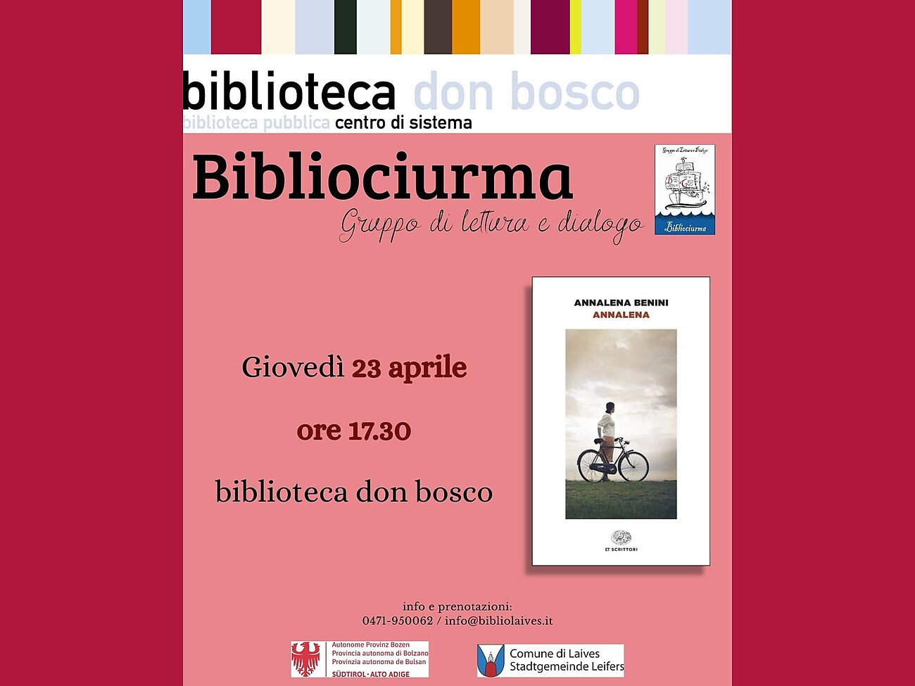 Info e prenotazioni: 0471/950062; info@bibliolaives.it
