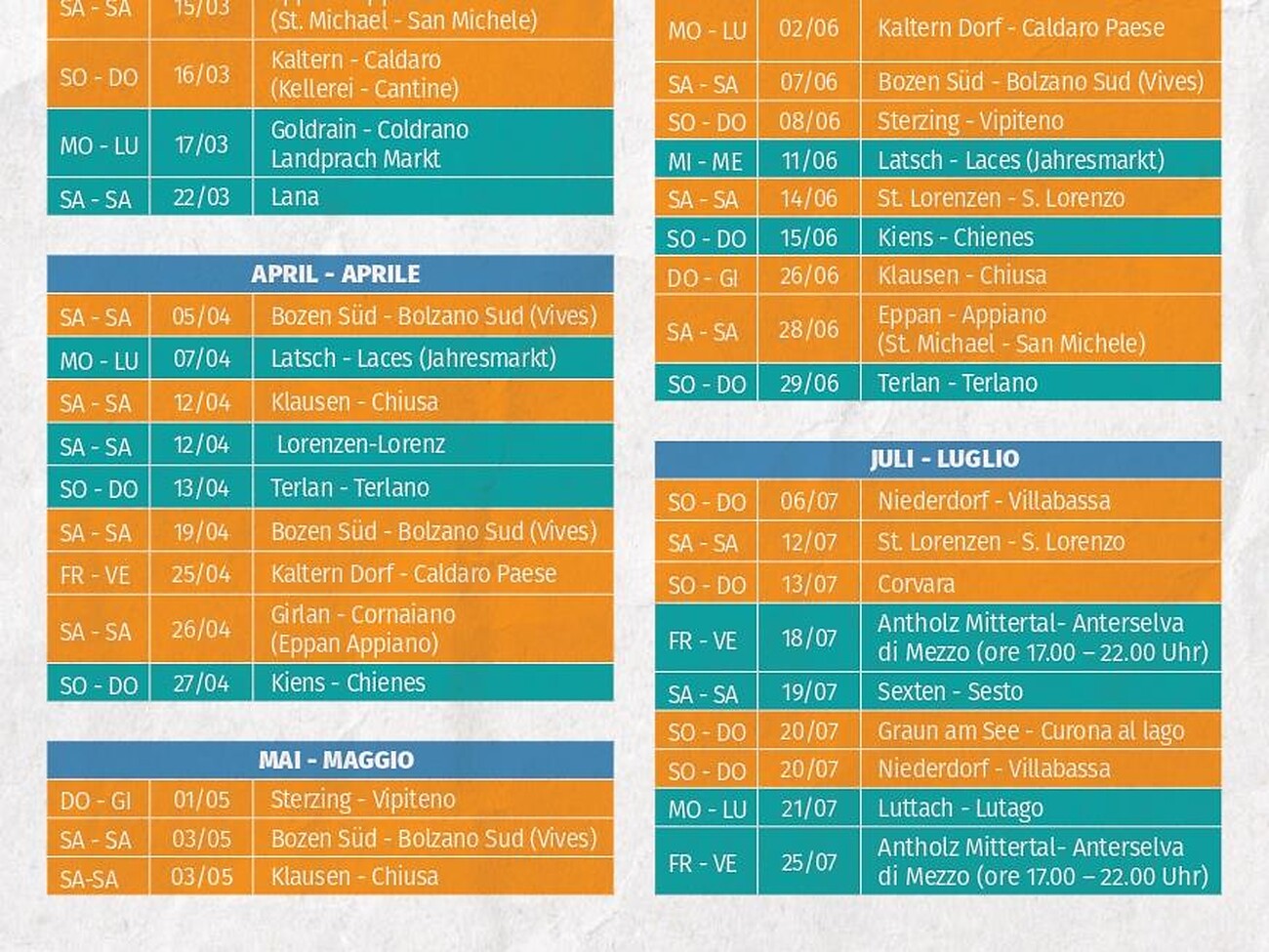 Date un’occhiata al nostro calendario dei mercatini e veniteci a trovare, tra poco saremo nella Vostra zona! Mercati a Bolzano, Merano, Silandro ,Vipiteno, Caldaro e anche diversi luoghi nella provincia di Trento (Trentino Alto Adige).