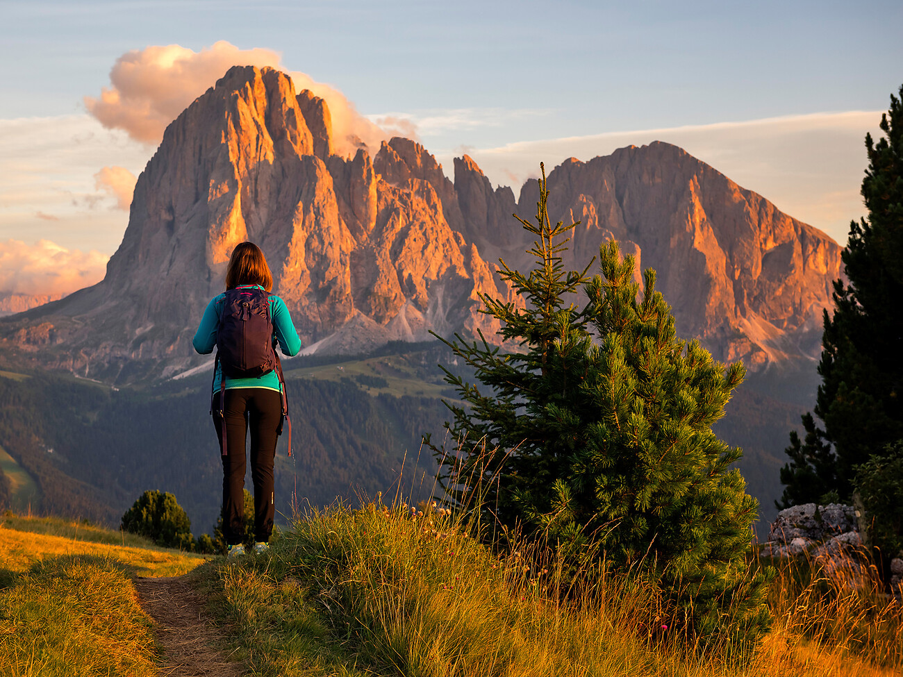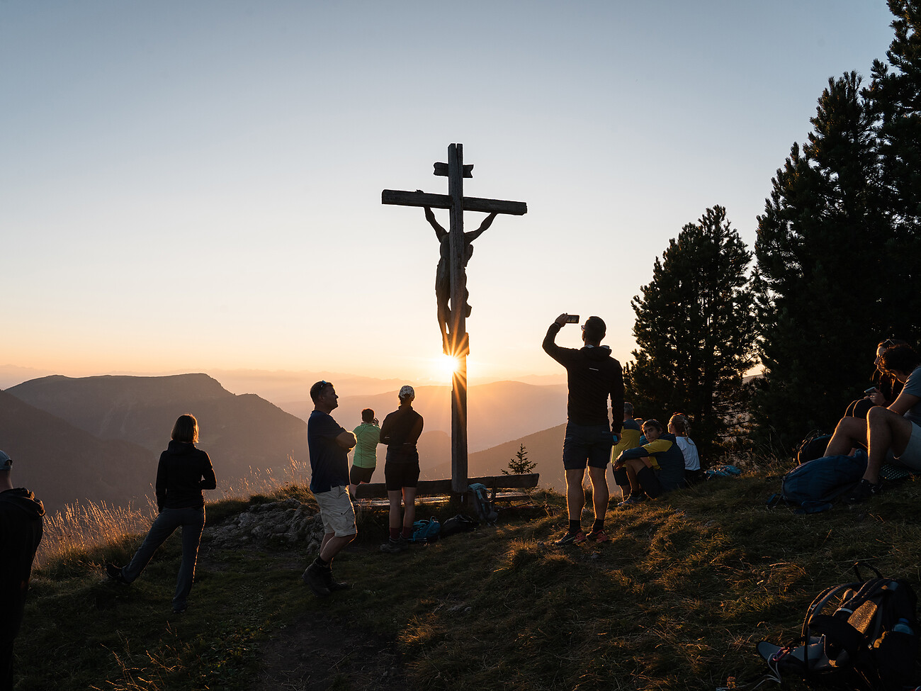 Partendo nel tardo pomeriggio dal parcheggio Cristauta, camminerete attraverso magici boschi fino ad arrivare al Sëurasas. La luce del sole al tramonto avvolgerà il paesaggio in un’atmosfera particolare. Ammirate sullo spuntone roccioso gli ultimi raggi del sole, la straordinaria colorazione del cielo e il rosso infiammante delle montagne circostanti.