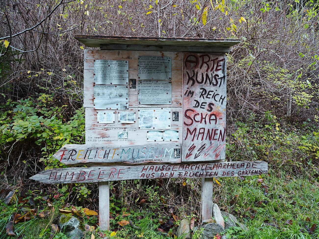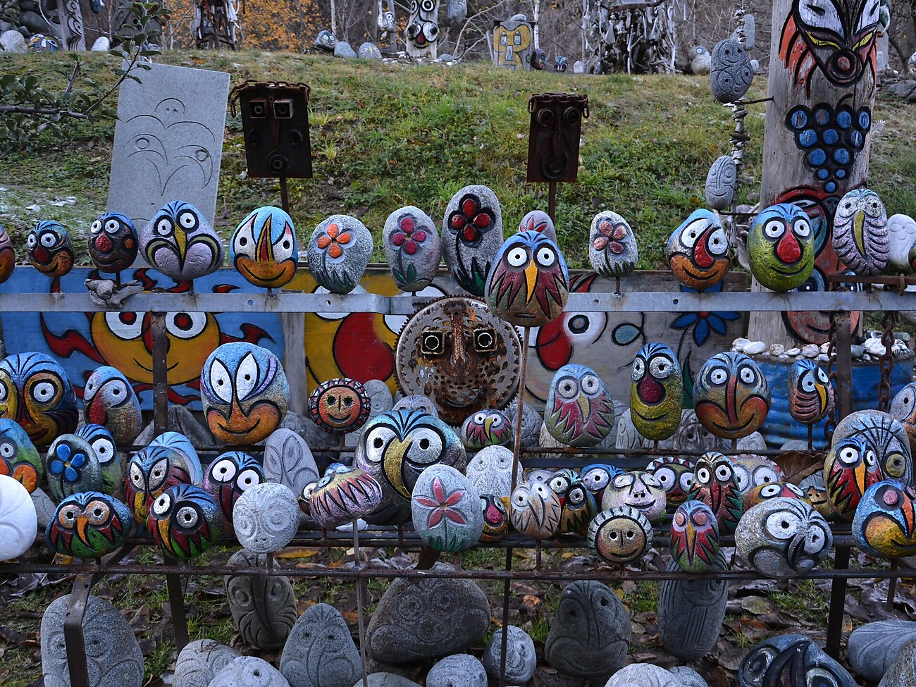 Tra pietre dipinte, corna, totem, legni e oggetti trovati, arte e natura si fondono in un’esperienza unica.