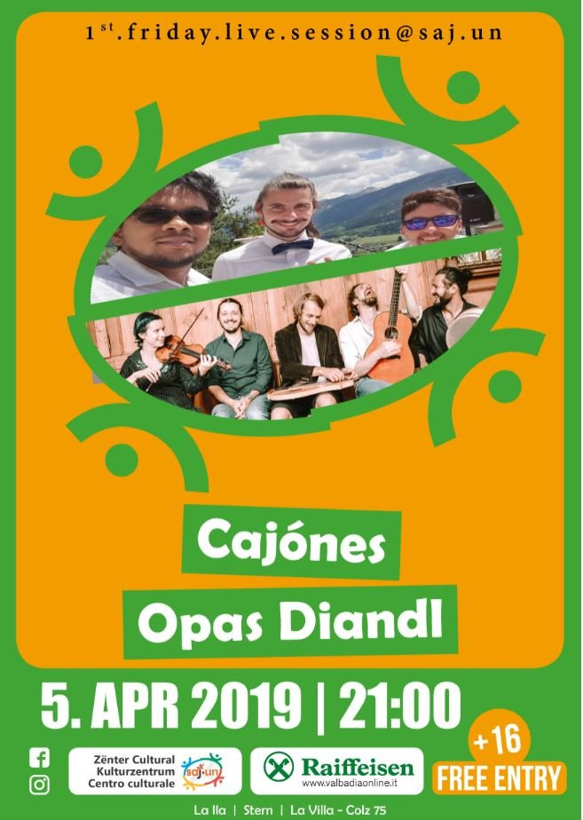 Cajónes, das Trio aus dem Fassatal, präsentiert um 21:00 Uhr ein abwechslungsreiches musikalisches Programm, das von Liedern aus den 60er Jahren bis zu aktuellen Hits reicht.
