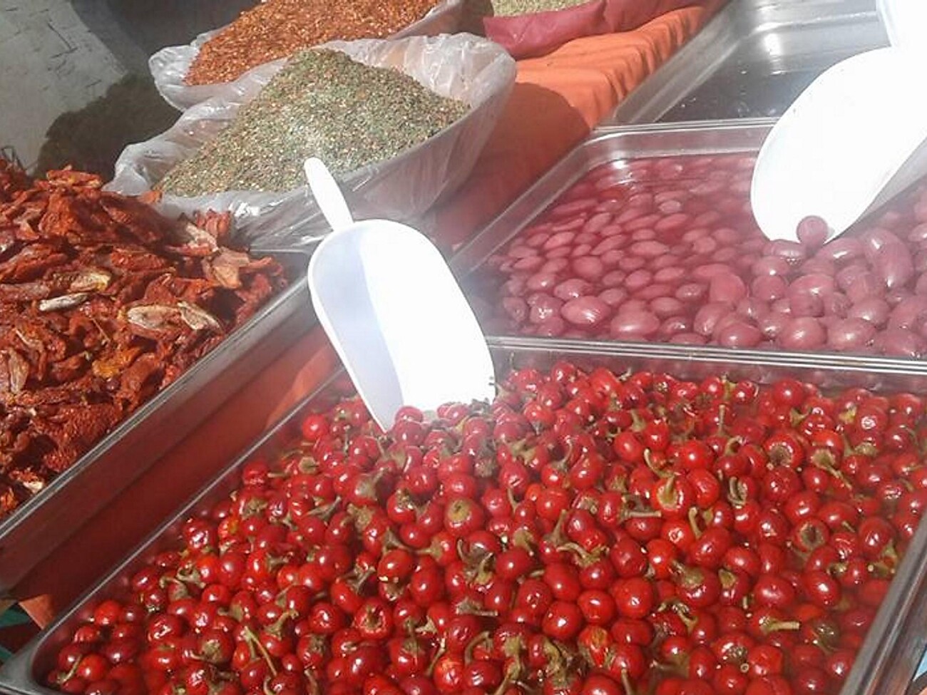 Degustazione e vendita di prodotti tipici pugliesi come Olive, Olio extra vergine di oliva, Pane pugliese, pomodori secchi, Carciofi, Pasta, Taralli, Mozzarella di bufala Gargano DOP, Gaciocavallo Silano DOP, Burrata, Vino Primitivo IGP e Negroamaro IGP.