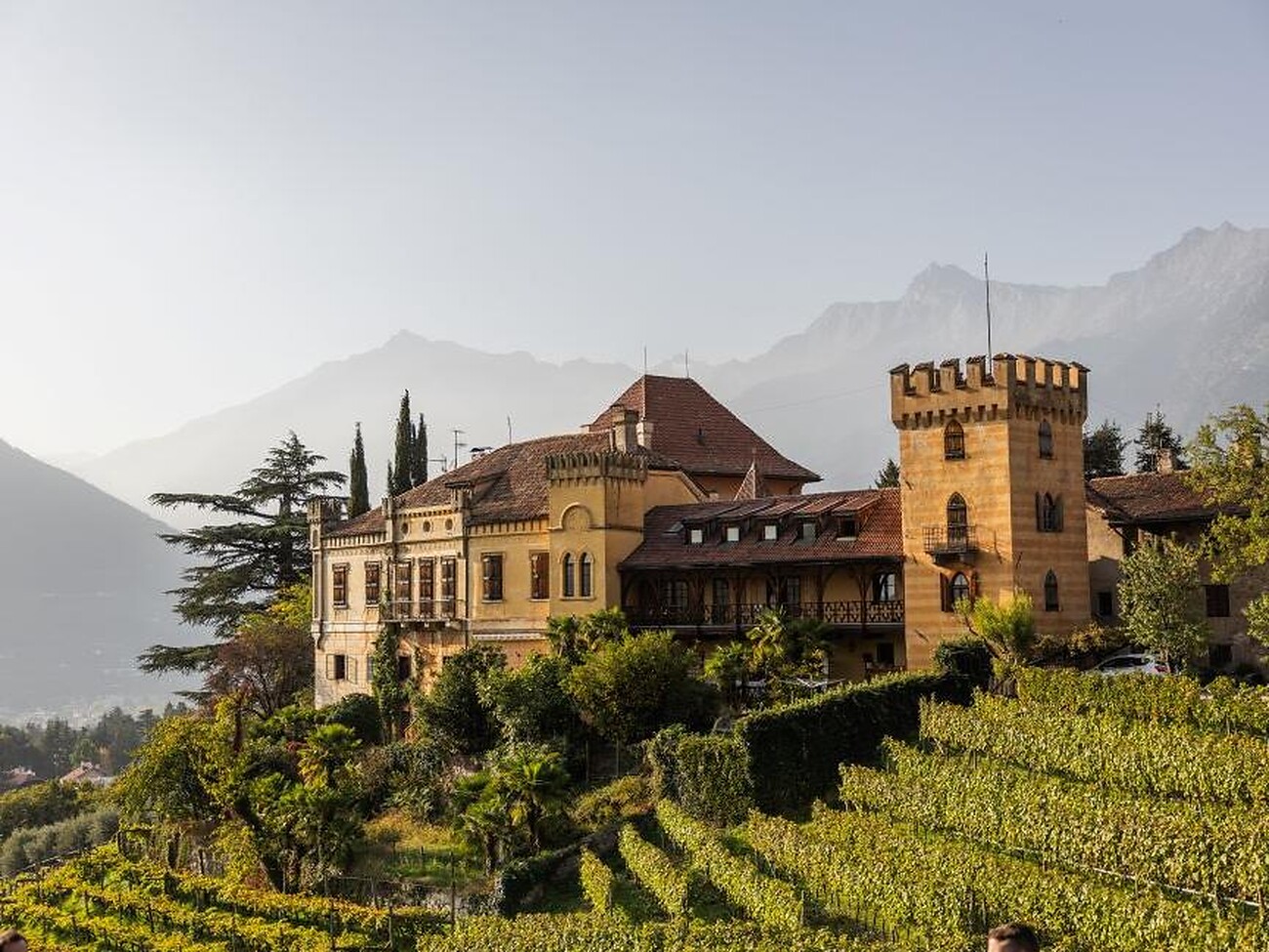 sonnenverwöhnten Weinhänge, oberhalb der Gärten von Schloss Trauttmansdorff,
