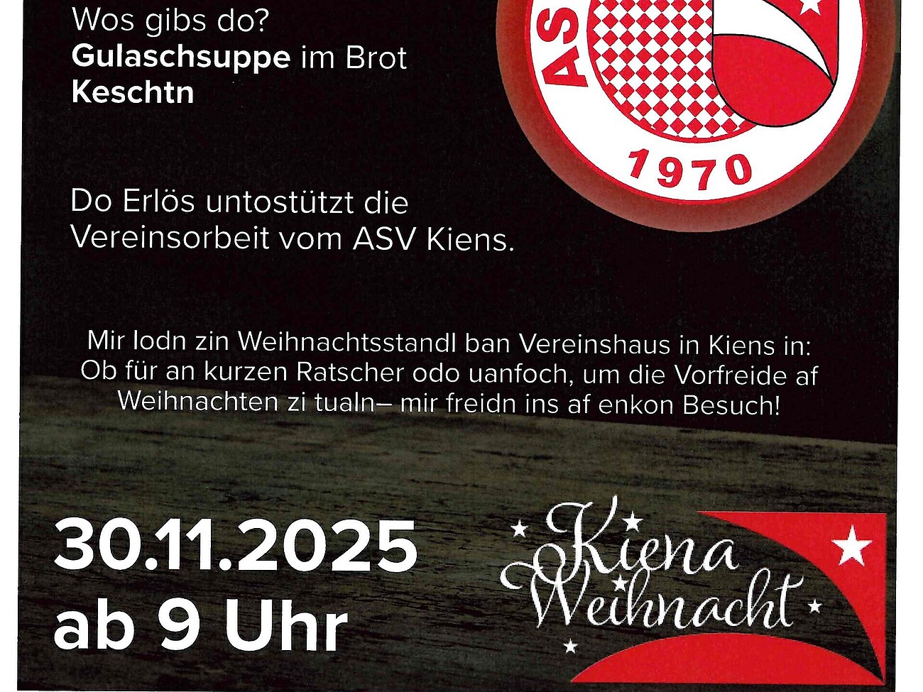 L’ASV Calcio Chienes vi invita cordialmente al Mercatino di Natale di Chienes!