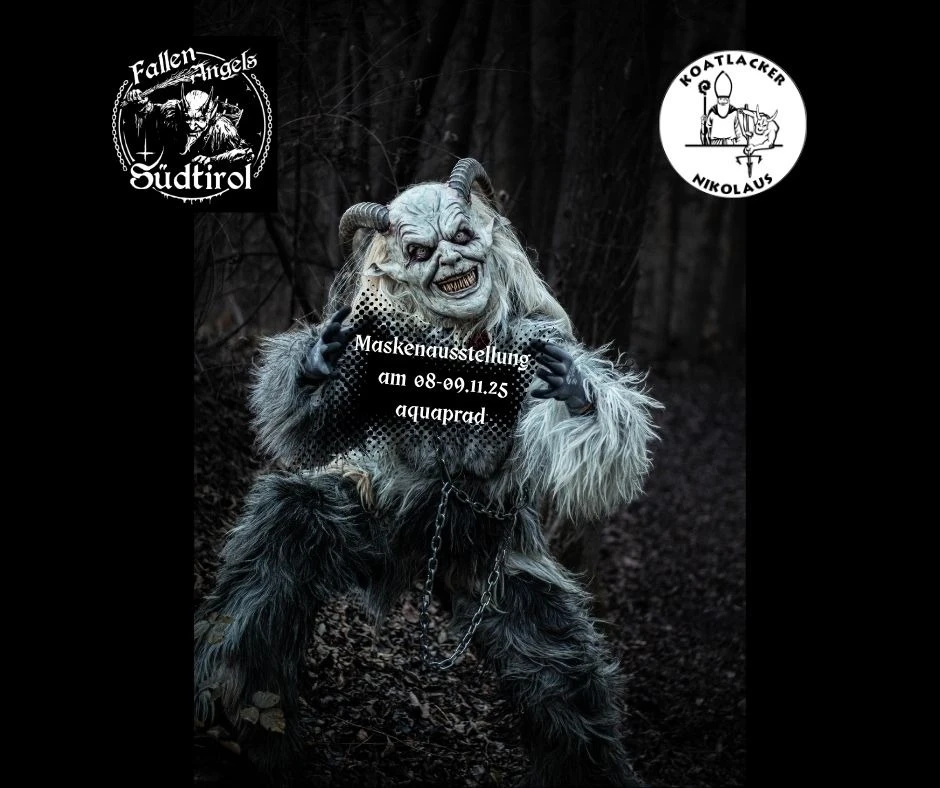 L’08 e 09 novembre 2025 vi aspetta al Centro visite del Parco Nazionale aquaprad a Prato allo Stelvio una mostra di maschere davvero speciale, organizzata dai "Koatlacker Tuifl" e dai "Fallen Angels Südtirol".