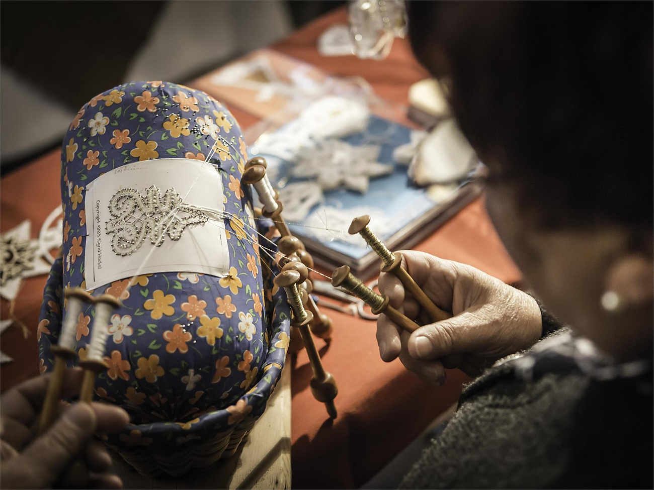 La mostra temporanea "Merletto e Miniere" racconta il contesto storico, traccia un filo tra l'industria mineraria e quella del merletto, presenta i profili delle persone più influenti ed espone i più bei merletti a tombolo, da quelli di moda a quelli d'arte.