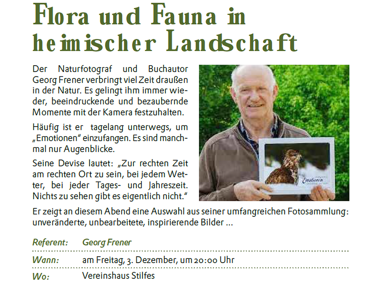 Der Naturfotograf und Buchautor Georg Frener verbringt viel Zeit draußen in der Natur. Es gelingt ihm immer wie der, beeindruckende und bezaubernde Momente mit der Kamera festzuhalten.