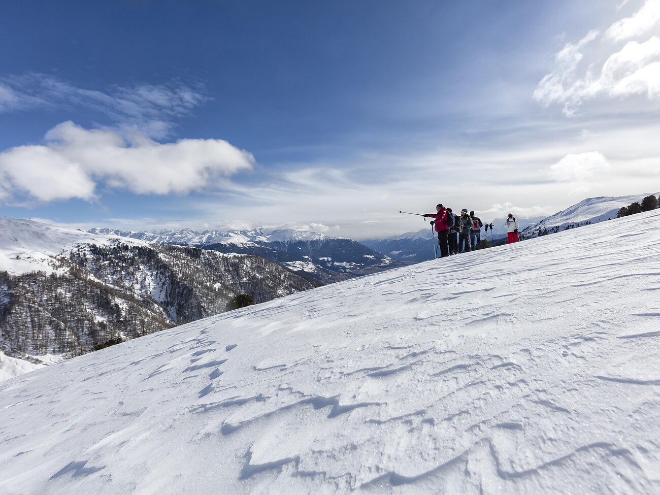 Insieme alla guida escursionistica Gerhard camminiamo attraverso il paesaggio naturale intatto e innevato. Godiamo il silenzio e l'aria fresca della regione Alta Val Venosta.