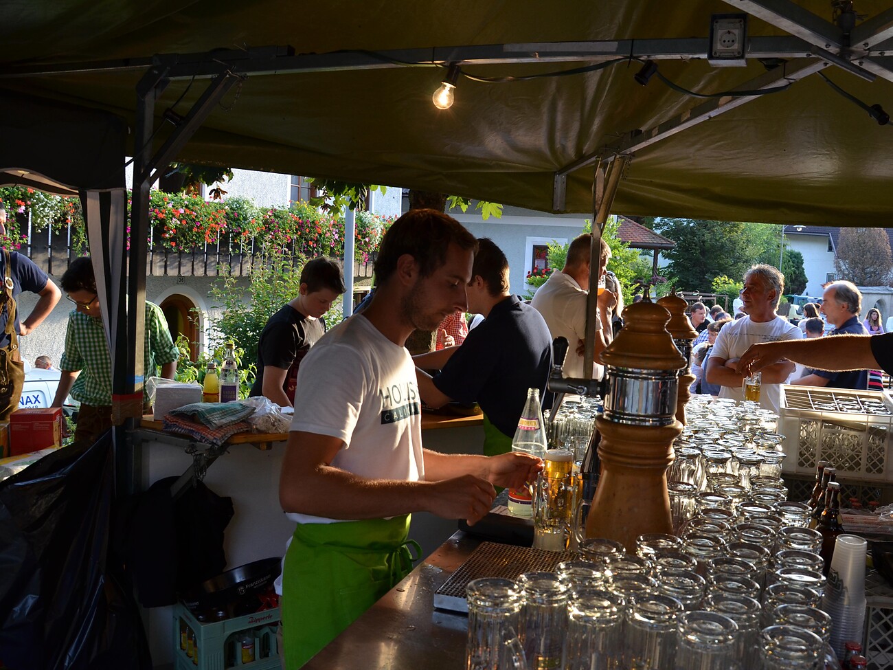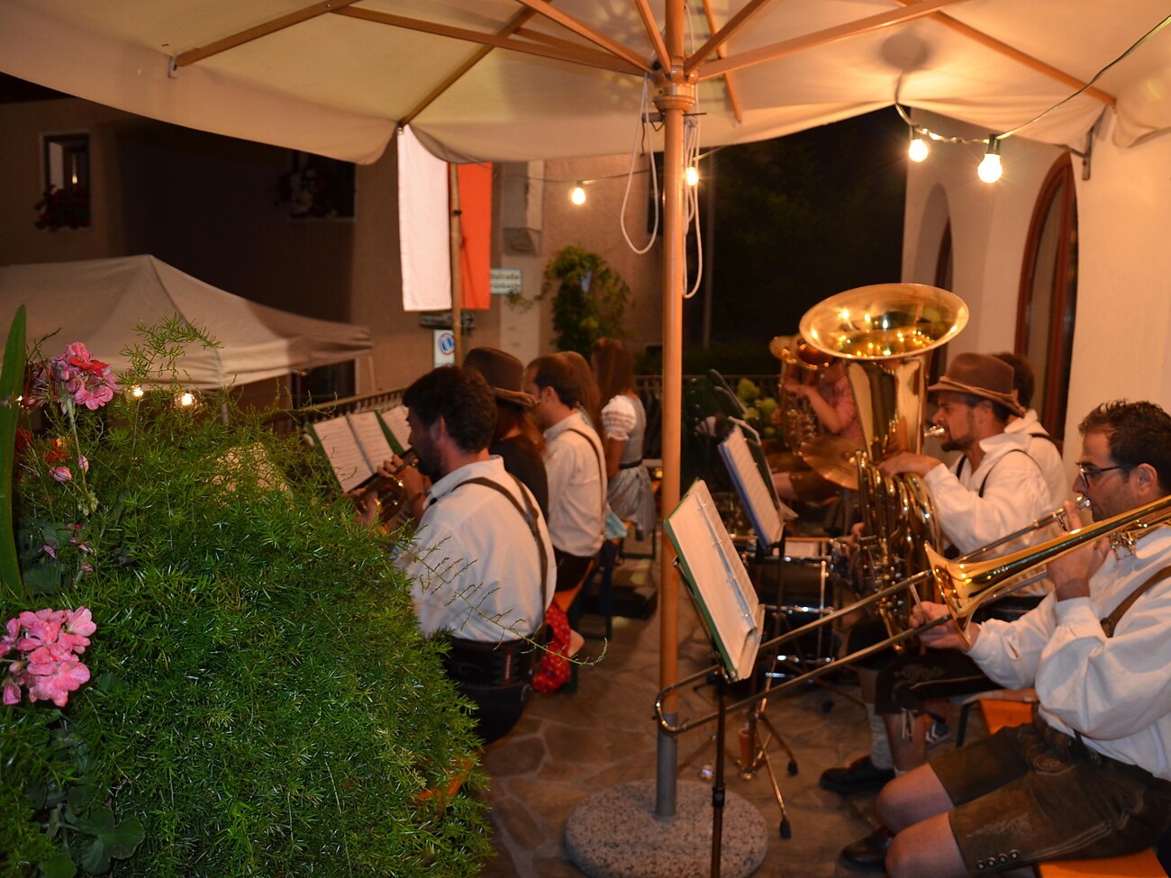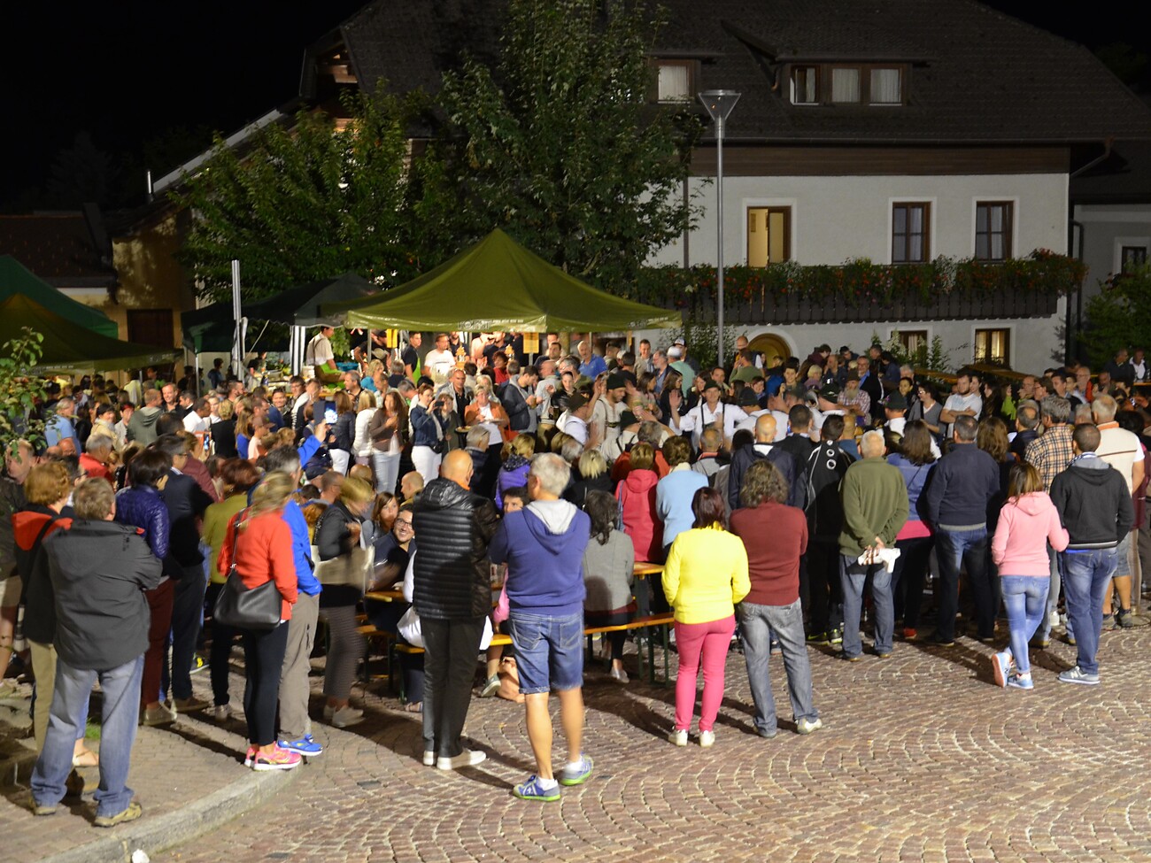Piccola sagra a Chienes sulla piazza del paese di sopra, in serata.