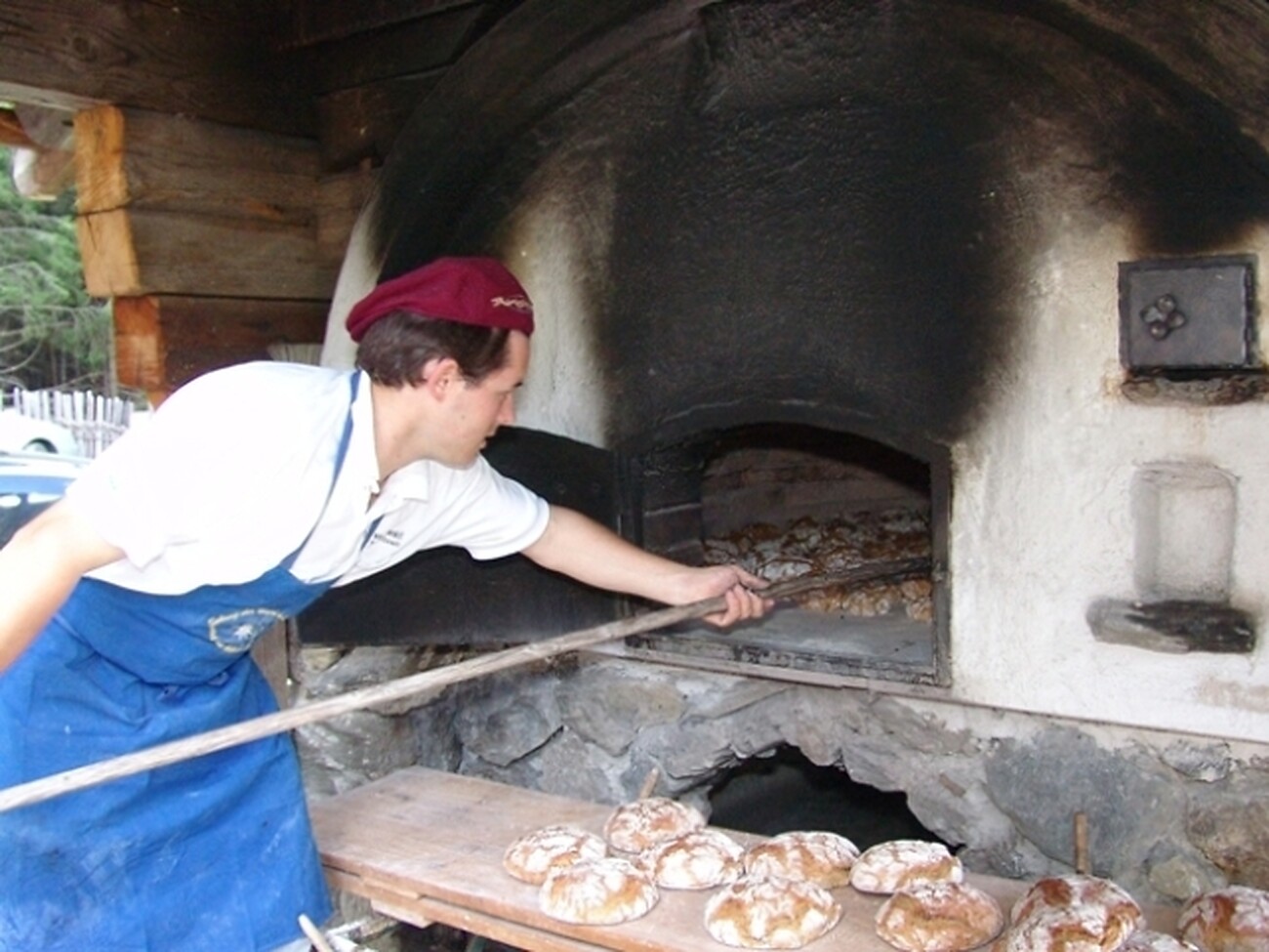 Preparazione del pane casareccio nel vecchio forno presso l'Almdorf Haidenberg/Monte Pagano a Santo Stefano dalle ore 13:00 alle 16:00 con degustazione del pane appena sfornato.