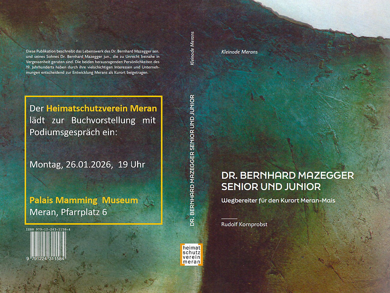 Questa pubblicazione descrive l'opera della vita del dottor Bernhard Mazegger sen. e di suo figlio, il dottor Bernhard Mazegger jun., che sono stati ingiustamente quasi dimenticati. Queste due personalità di spicco del XIX secolo hanno contribuito in modo decisivo allo sviluppo di Merano come località termale grazie ai loro molteplici interessi e alle loro iniziative.