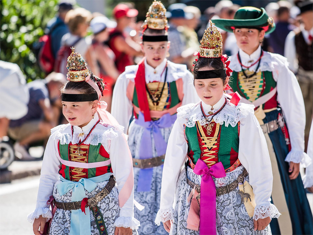 Segue la processione del Sacro Cuore di Gesù attraverso il paese con partecipazione dei costumi tradizionali della Val Gardena.