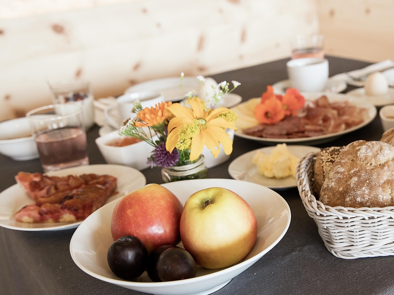 La piacevole conclusione è una merenda tradizionale in un'atmosfera accogliente, con prodotti del maso e tempo per lo scambio e l'incontro.