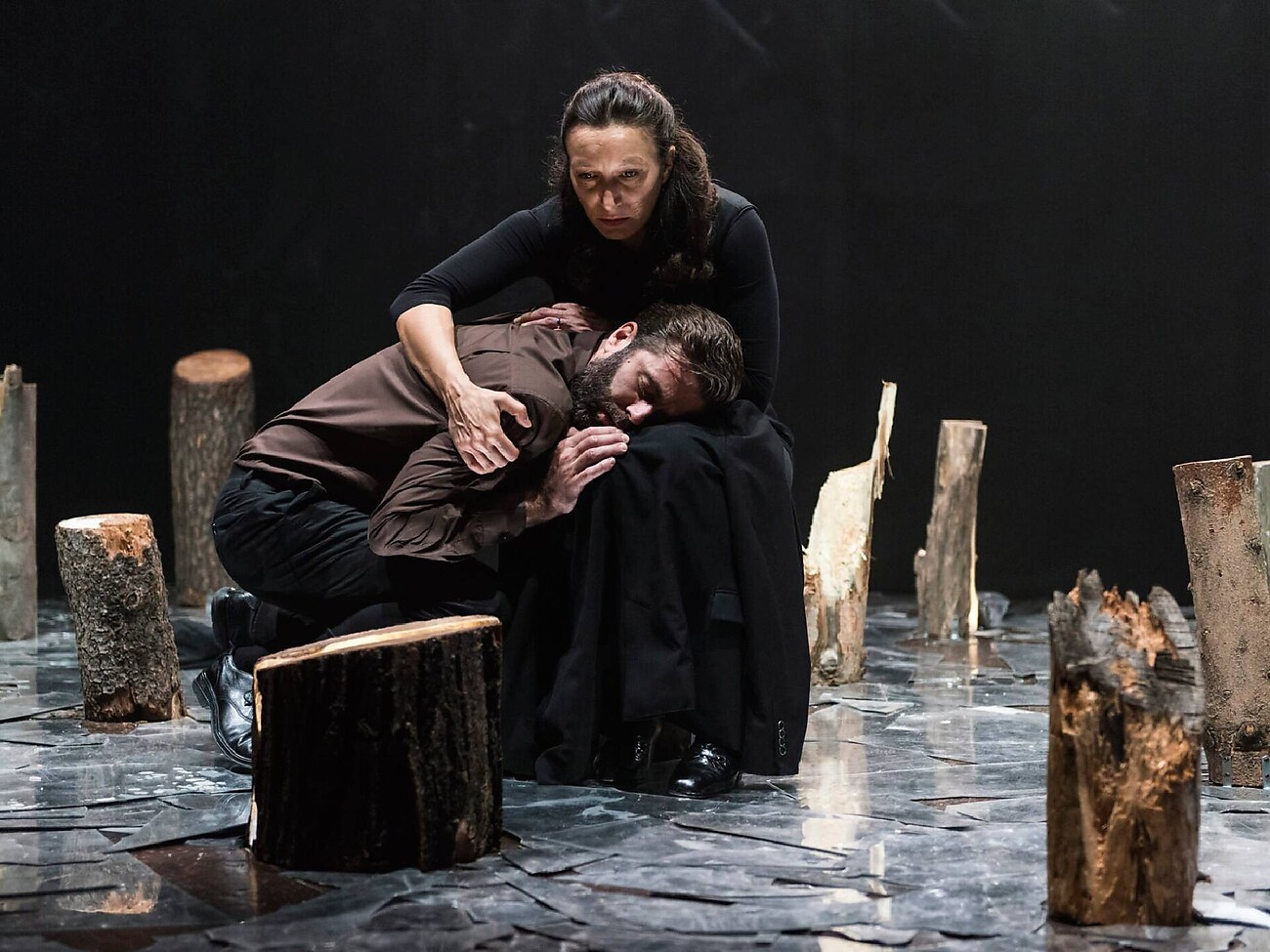 Trina ed Erich. Una giovane donna, un uomo. Due voci. Due testimoni. Due vittime. Siamo a Curon in Val Venosta. Pochissimi chilometri dal confine con l’Austria. Il bellissimo romanzo di Marco Balzano Resto qui diventa un racconto teatrale a due personaggi e molte più voci, grazie ai corpi e alla maestria di Arianna Scommegna e Mattia Fabris: sono Trina ed Erich, testimoni, vittime, all’occorrenza sono pure carnefici. Sono i testimoni di un’intera comunità spazzata via in nome del progresso e di una diga che non è servita quasi a nulla, se non a cancellare la vita di alcune centinaia di famiglie che avevano resistito a tutto, compreso Prima e Seconda guerra mondiale, cambio di nazionalità, fascismo e opzioni. Attraverso un incastro drammaturgico di parti narrate e dialoghi, si dipana questo ennesimo pasticciaccio brutto della storia d’Italia. Un allestimento semplice, snello: come avrebbe scritto Melville, antico e malinconico. Storia di mani sporche e tenacia, rabbia, violenza e rimorsi. Disegni. Storia di donne e uomini semplici che non hanno accettato la resa e ora – davanti al Tribunale dell’Umanità e per una figlia che non c’è più – ripercorrono la loro lunga e umiliante sconfitta scrive Francesco Niccolini, autore e regista del testo teatrale.