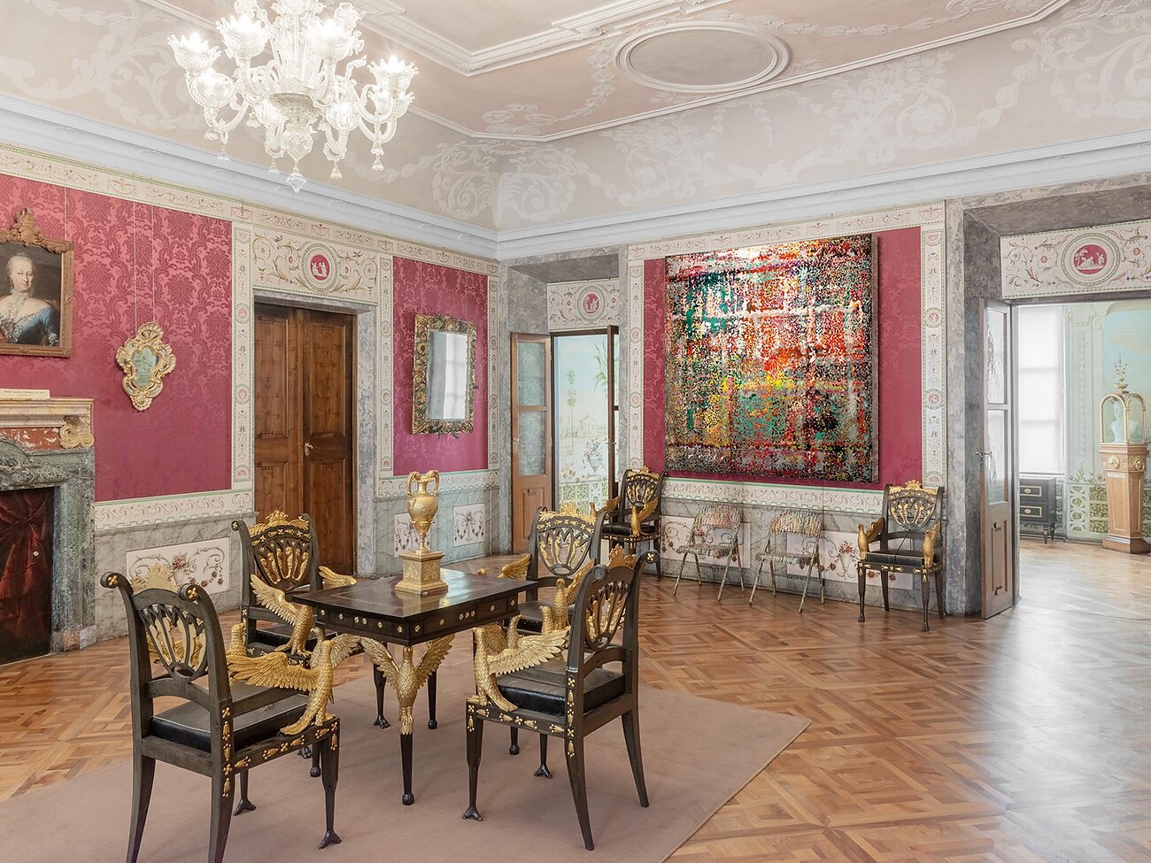 La mostra speciale, che si compone di due parti, presenta uno spaccato rappresentativo dell'opera di Robert Pan in un'esposizione personale e integra le opere dell'artista nell'esposizione permanente dello storico Palazzo Vescovile, facendole dialogare con gli arredi barocchi degli appartamenti imperiali ed episcopali. Questa insolita combinazione apre un dialogo tra le epoche: le composizioni astratte sperimentali di Pan, che si concentrano su forme, colori e strutture, interagiscono con le opere simboliche dei maestri barocchi. La mostra offre quindi non solo l'opportunità di ripercorrere lo sviluppo artistico di Robert Pan, ma invita anche i visitatori a scoprire il contrasto visivamente accattivante tra diverse forme di espressione artistica.