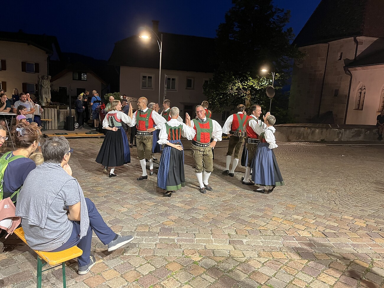 Danza e musica! Il gruppo di danza folkloristica di Nova Ponente si esibisce prima, poi suona la banda musicale di Ega. Gli Schützen offriranno bevande fresche