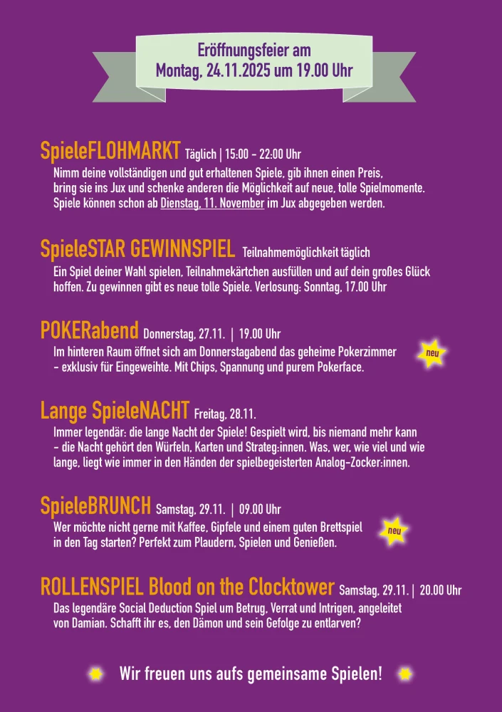 Täglich von 15:00 bis 22:00 Uhr stehen die Türen offen, um gemeinsam zu würfeln, zu lachen und neue Spiele zu entdecken.