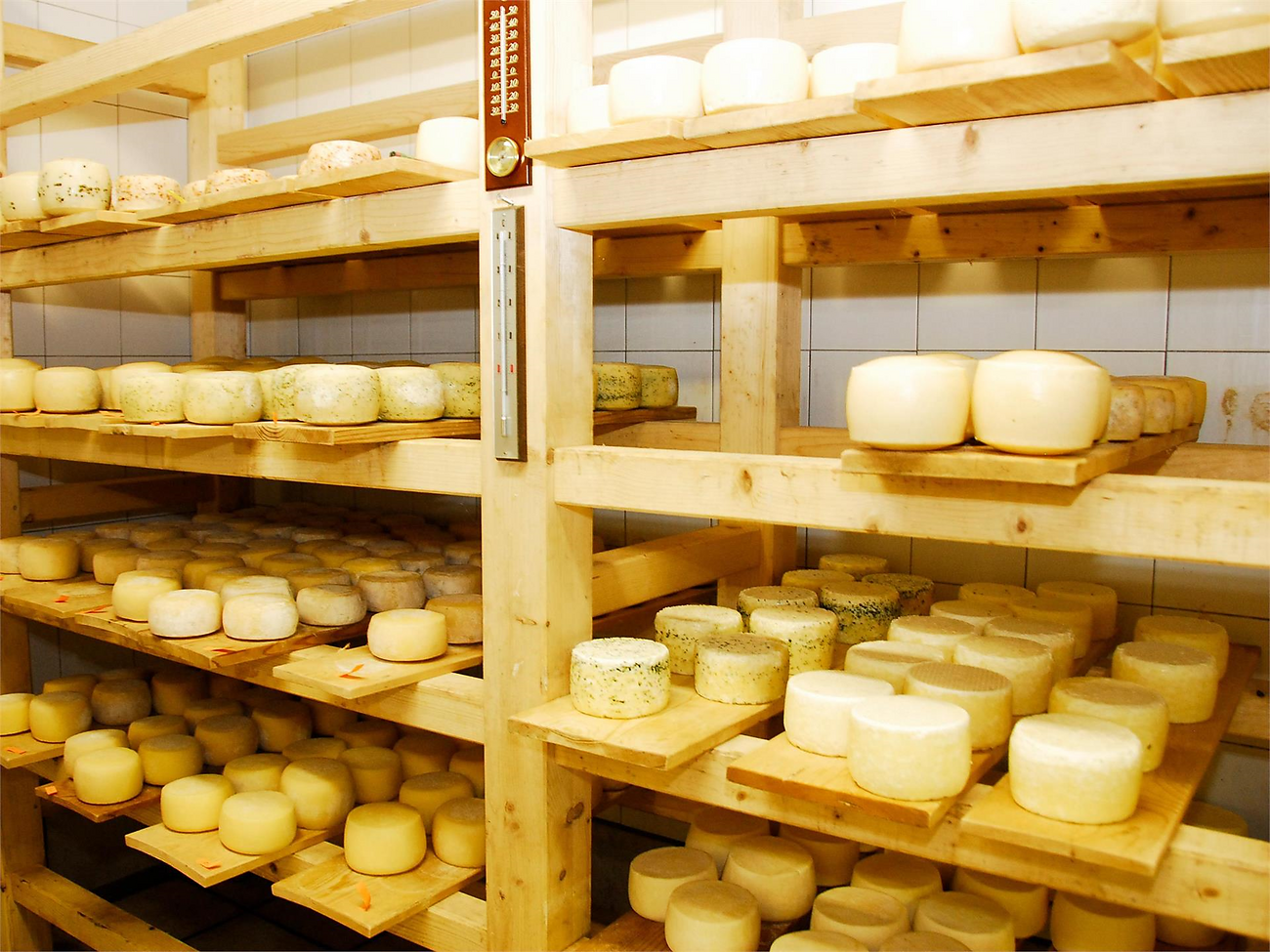 Stand di vendita del caseificio "Außerrassen" nel centro del paese/San Genesio