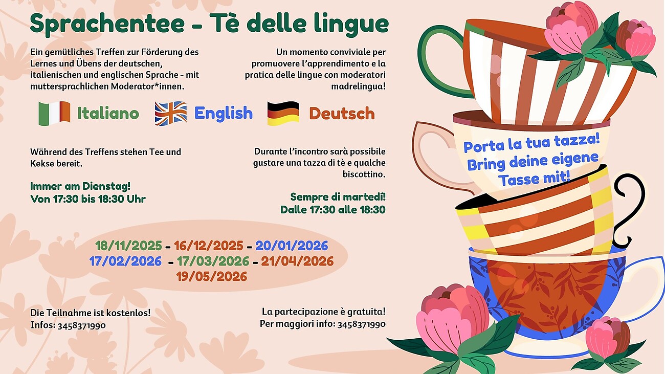 Durante l'icontro sarà possibile gustare una tazza di té e qualche biscottino. Porta la tua tazza!