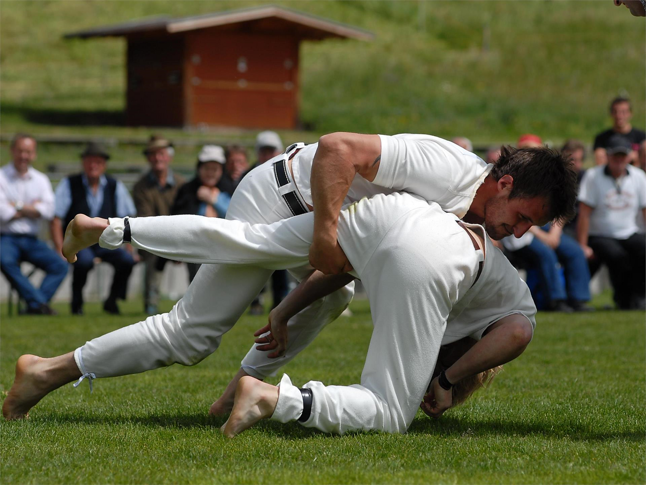 Non è una vera e propria tradizione, ma è comunque uno sport singolare che merita essere osservato da vicino. È praticato in prima linea in Alto Adige, nel Tirolo e anche nella zona di Salisburgo, da dove trae anche le sue origini risalenti al 1947. Si tratta di un’antica forma di lotta corpo a corpo, in cui dei ragazzi forti lottano per il titolo del cosiddetto “Hagmoar”. Il vincitore deve almeno aver sconfitto tre degli avversari, buttando questo per terra nel modo che tocchi il terreno con tutte e due le spalle. Alla fine, al vincitore della sfida viene consegnato una penna bianca “Schneidfeder” (la penna del coraggio). Questo premio a quel tempo era tutto l’orgoglio degli atleti… purtroppo oggi si guadagnano una medaglia, come in tutti gli sport.