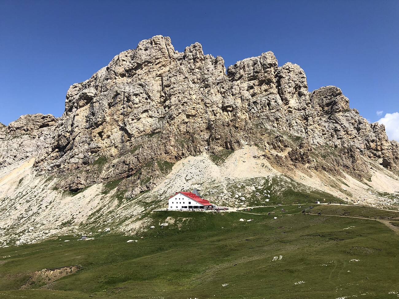 Dopo la salita in funivia all’Alpe di Siusi iniziamo l’escursione in direzione del Sentiero Panoramico e attraversiamo i pendii del Goldknopf fino ai piedi della cresta del Rosszahn. Salendo a tornanti raggiungiamo la Forcella Denti di Terrarossa e poco dopo il Rifugio Alpe di Tires, dove ci fermiamo per la pausa pranzo. La discesa avviene attraverso il Bärenloch, in parte attrezzato con cavi d’acciaio. Più in basso il sentiero ci conduce attraverso la Val Ciamin fino a Bagni di Lavina Bianca.