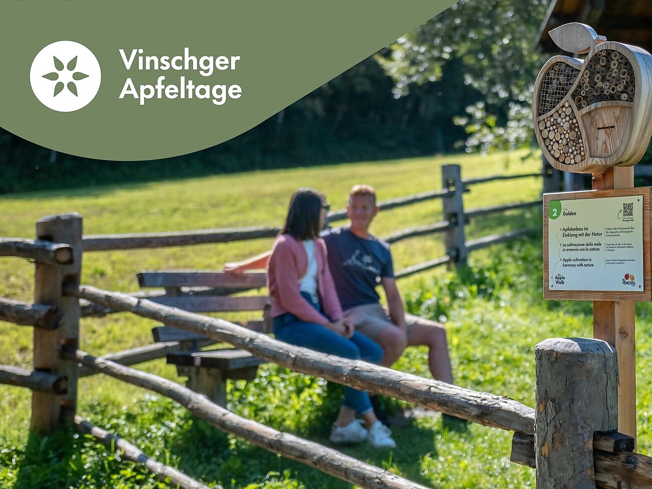 Mit viel Herz und Fachwissen erzählt unsere Apfelbotschafterin von der Tradition des Apfelanbaus im Tal, von Sortenvielfalt, Jahreszeiten und dem achtsamen Umgang mit der Natur. Immer wieder eröffnen sich herrliche Ausblicke auf die umliegende Bergwelt und die weite Talebene des mittleren Vinschgau.