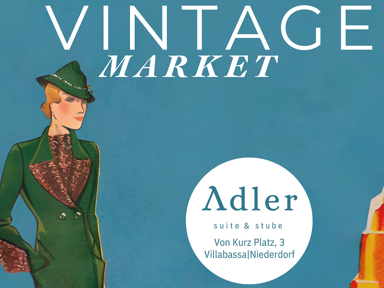 Sabato dalle ore 09:00 alle ore 21:00 e domenica dalle ore 09:00 alle ore 17:00. Per un intero fine settimana, l'Hotel Adler si dedica al vintage. 12 stand selezionati presentano abbigliamento di alta qualità, accessori storici, dagli occhiali da sole alle cappelliere. Musica dal vivo dalle ore 17:30.
