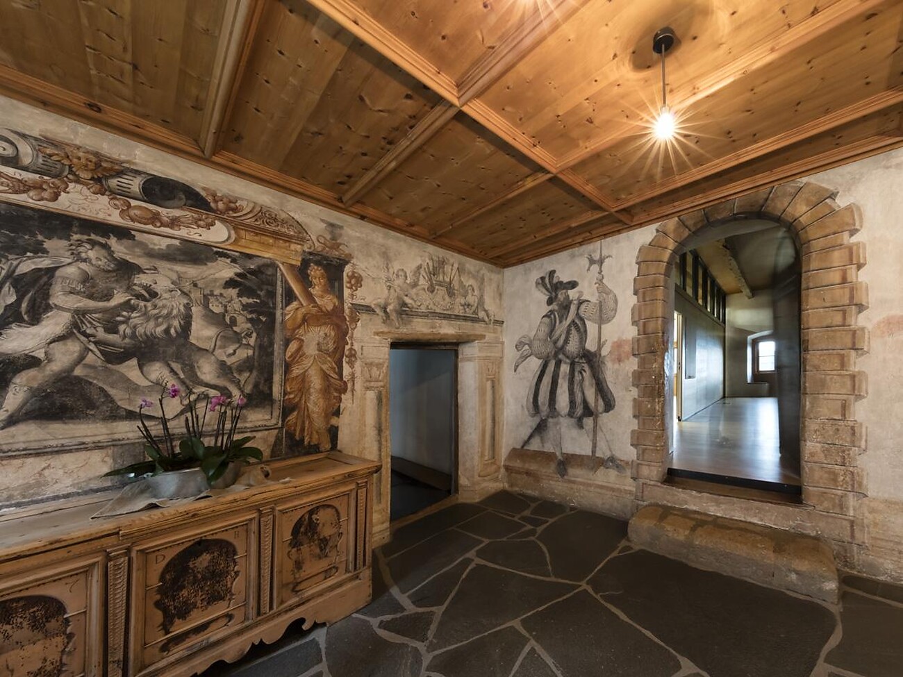 di ristrutturazione. In quell’epoca il castello era il rifugio per i vescovi di Coira. L’edificio, restaurato in modo esemplare, ospita tutte le epoche artistiche, dal romanico all’arte contemporanea. Nell’edificio storico è alloggiata la scuola agricola.