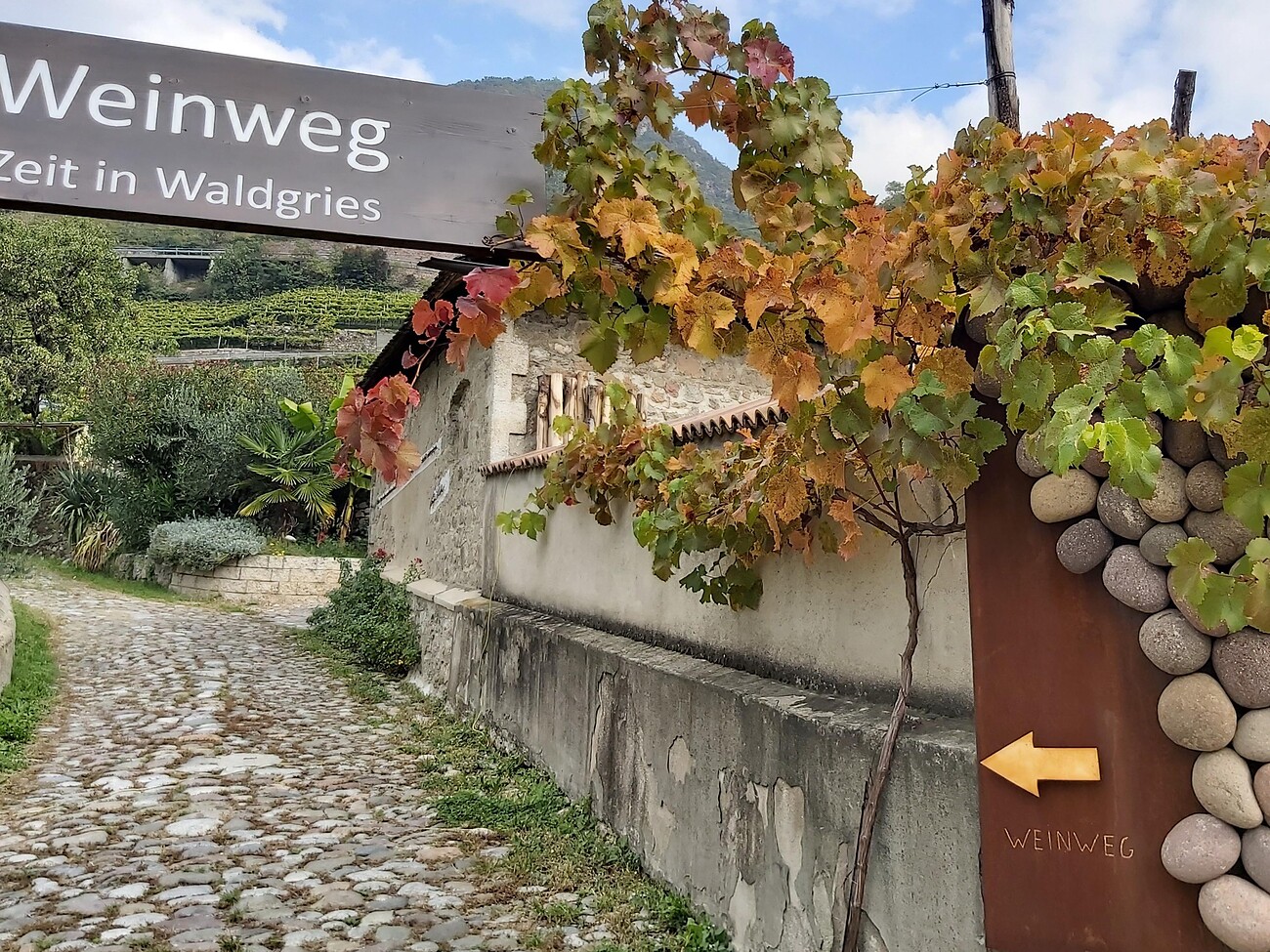 Unico nel suo genere è il sentiero del vino "Zeit in Waldgries", dove il visitatore impara molte cose interessanti sulla cantina e il lavoro quotidiano presso la tenuta. Al termine del percorso didattico artistico, il visitatore viene premiato con una magnifica vista sulla città di Bolzano e sui castelli circo.