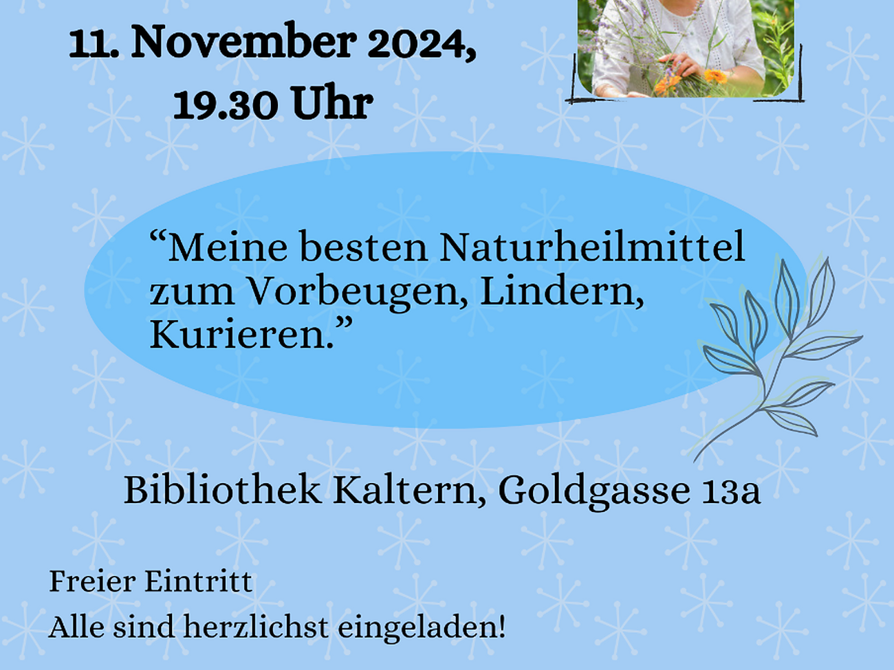 Der Winter ist eine Herausforderung für unsere Gesundheit! Da helfen oft einfache Hausmittel, um die Selbstheilungskräfte auf nachhaltige Weise zu unterstützen und zu fördern. Welche das sind, wie sie helfen und was man unbedingt zuhause haben sollte, das erfahren Sie in diesem praxisnahen Vortrag.