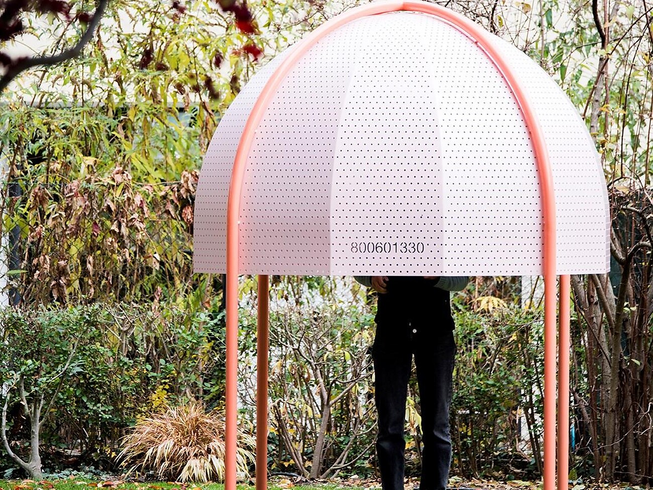 sforato e racconta il rapporto tra visibilità e invisibilità. L’installazione simboleggia il diritto ad una protezione efficace indipendentemente dall‘origine, dal genere, dallo status sociale ed evidenzia la necessità di strutture protettive nella lotta contro la violenza. Il numero della Casa delle donne di Bressanone è inciso sull’ombrello: 80060130