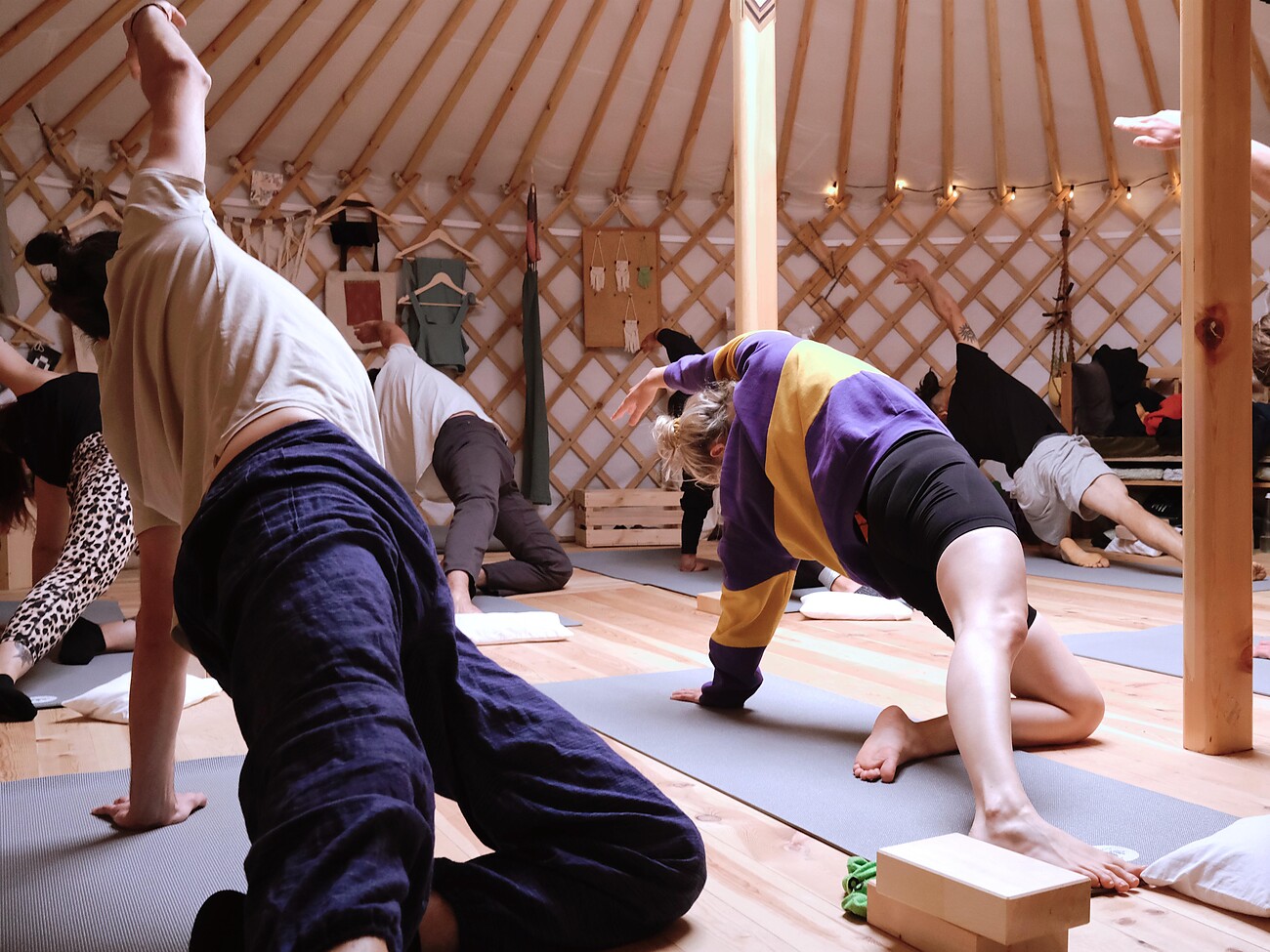 Yoga fluido e dinamico, movimenti intuitivi, sequenza sistematica per raggiungere una posizione speciale della classe.